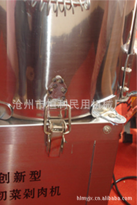 本厂自行研制独家生产的“狮城牌”分体式切菜、剁肉机克服了原机低效率高耗能、清洗拆装难、部件易损的特点,技术有了重大突破,加工出各种蔬菜具有不泥、不烂、组织不破坏的多种优点,多出的肉光泽润滑、易搅拌-、松软。剁出的蒜泥保持原风味不变。此机特别适合肉食店加工肉类,饭店企业食堂,是厨师及各经营者的好帮手。