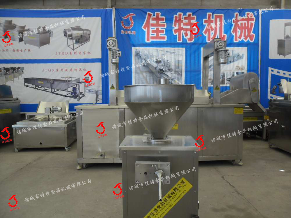 灌肠机是加工肠类制品的必备设备。能灌制大、中、小各种规格的肠制品。该产品外形美观、做工精良、操作方便、使用安全可靠。该机的料斗、阀门、灌肠管及整机外包装均采用优质不锈钢制造。符合食品卫生要求。适合灌制各种香肠、红肠、腊肠及糊状物制品。本机使用敞开式不锈钢料斗,适用于边续添加物料;与灌装手接触部件全部采用优质不锈钢制作以防生锈;机头采用外置式便于拆卸清洗;齿轮转速采用无级调速装置,0~136转手,任意选用。