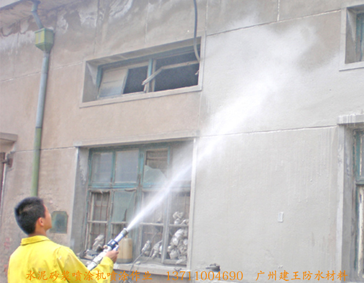 在施工前请先调试机器,可将润滑刘,K11与水配比:1:10搅拌均匀倒入置料斗,然后启动设备保持运行1分钟后,将润滑水排干,接上空气压缩机(另购)即可进行灌浆喷涂。