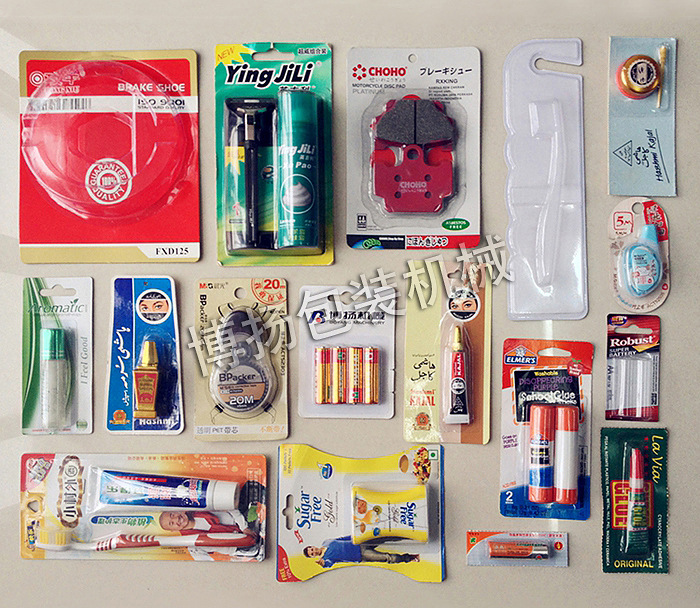 本机适合包装生活日用品、文具、小五金、化妆品、药口等纸塑包装。包装物如:电池、牙刷、针剂、润唇膏、笔、胶水、插座、轴承从而提高产品档次。