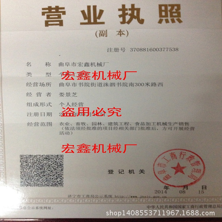 曲阜宏鑫机械厂 联系人:程欣(经理) 购机电话:0537-4917599
