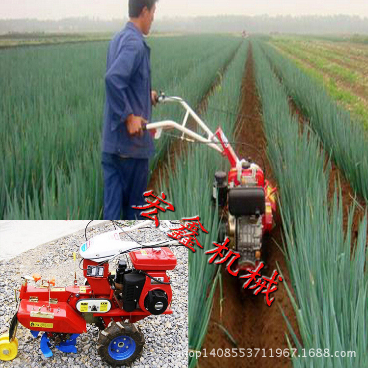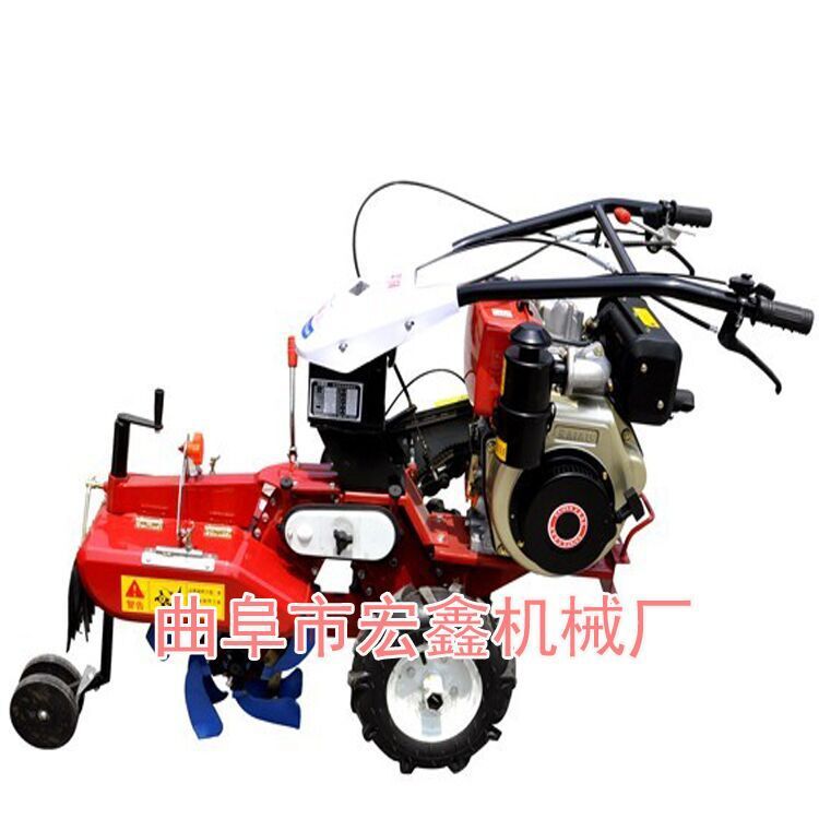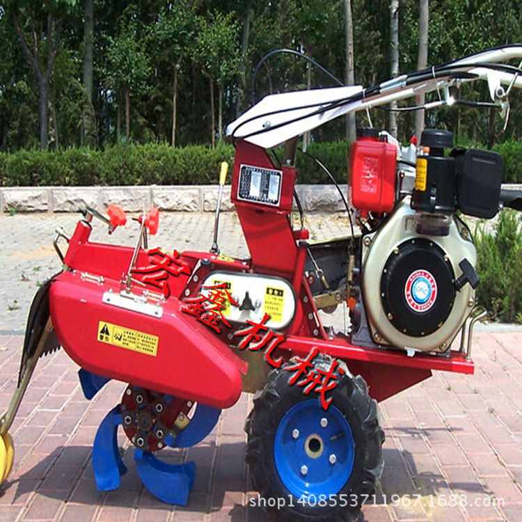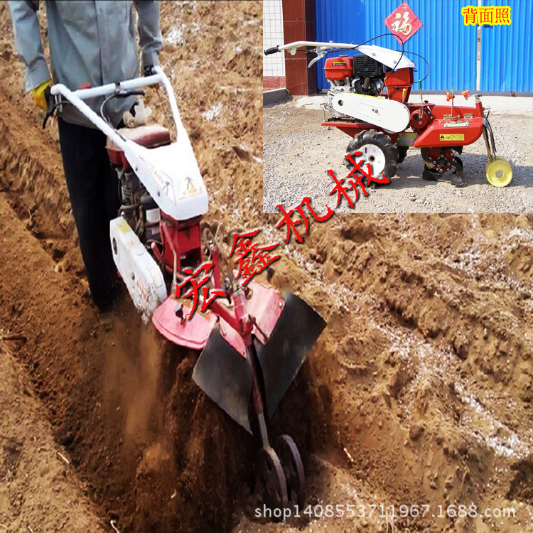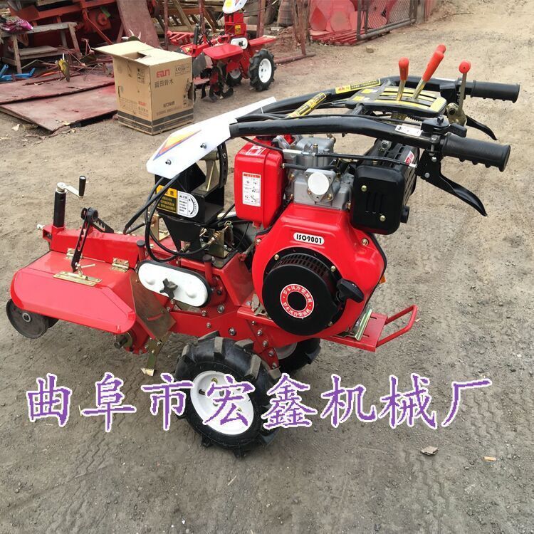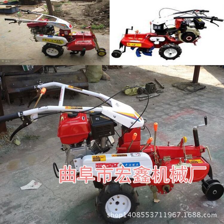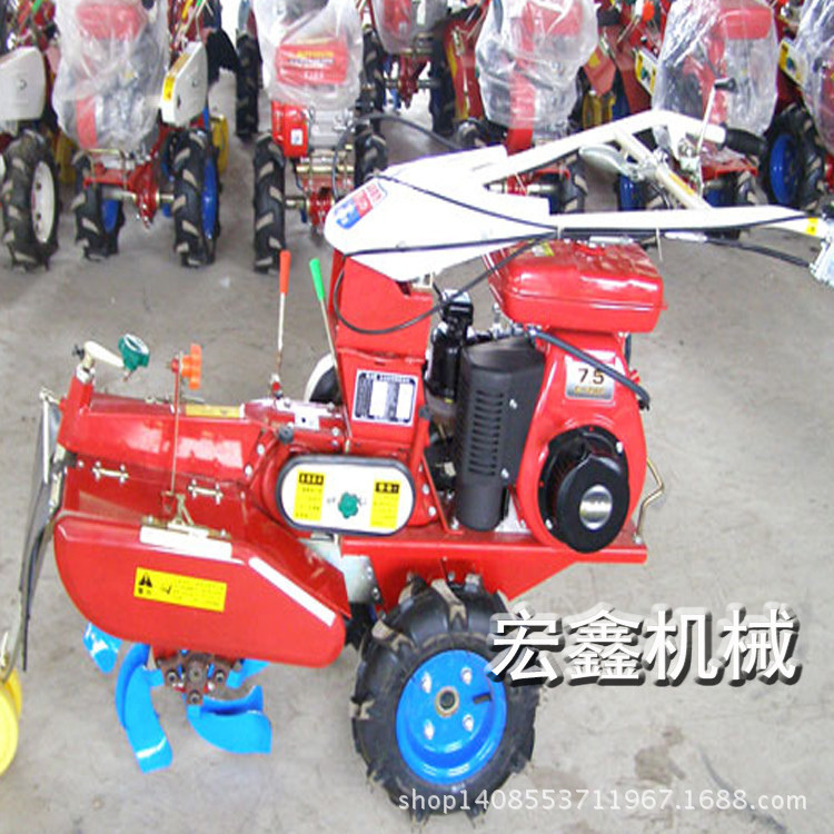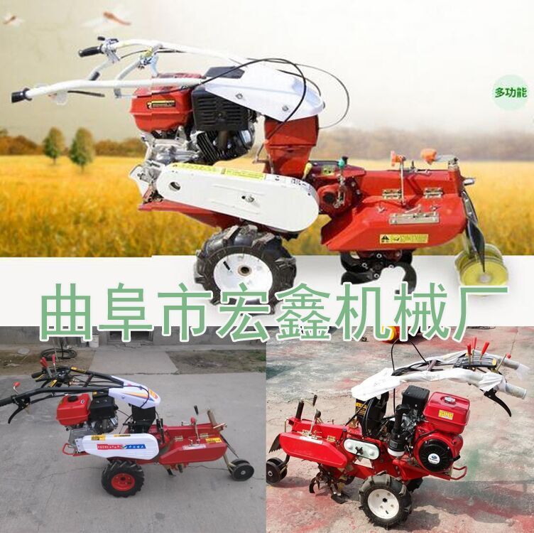 本机器包括机架、可调高低扶手,机架上设有(风冷或水冷)柴油机或汽油机、机架和扶手上设置有变速箱,变速箱的输出轴上设置有能够沿轴移动的驱动轮或链轨.传动方式主要有:全齿轮传动、皮带传动、链条传动三种传动方式.该机具有重量轻,油耗低、相对功率大,结构紧凑、机动性强、操纵轻便灵活的特点。可爬坡、越埂、阶梯性强。广泛适用于平原、山区、丘陵的旱地、水田、果园、菜地、烟地的深旋耕、浅旋耕、犁耕。配上相应机具可进行旱地旋耕、水田旋耕、抽水、开沟、喷淋、喷药除草碎土等作业,还可牵引拖车进行短途运输,是大中型农机无法媲美的多功能田园管理机,工作稳定可靠、使用寿命长、维修方便等特点。是进入农民家庭最理想的田园管理机。