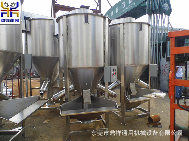鼎祥立式搅拌机分为加热干燥型及非加热干燥型:机器材料分为铁板型材及不锈钢型材:机器容量从500KG至15吨供客户选用,同时客户也可以按照实际需求选择加热或不加热型机器。