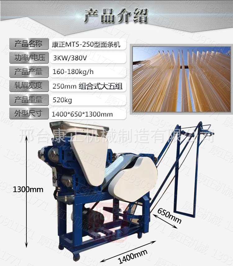- 操作:把拌好的面料放入面斗内,按刀并固定挡刀板(或挂钩)就可开机运转,第三组下来的面用手引导下一组,多组依次类推.
