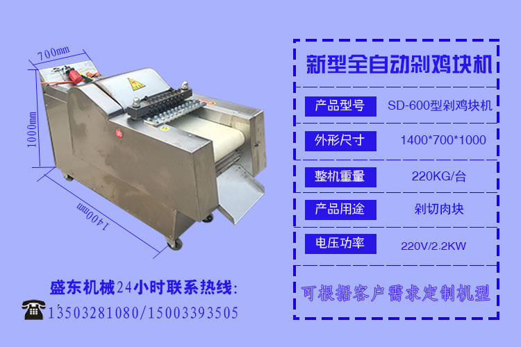 10、家用切鸡块机具有结构紧凑、外形美观、操作简便、效率高、耗电小、清洁保养容易、切块效果好等优点。
