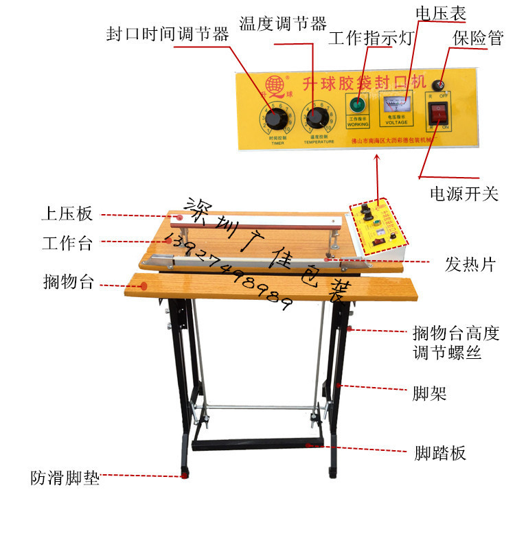 >原装正品升球脚踩薄膜袋封口机/SQ-300脚踏塑料袋封口机