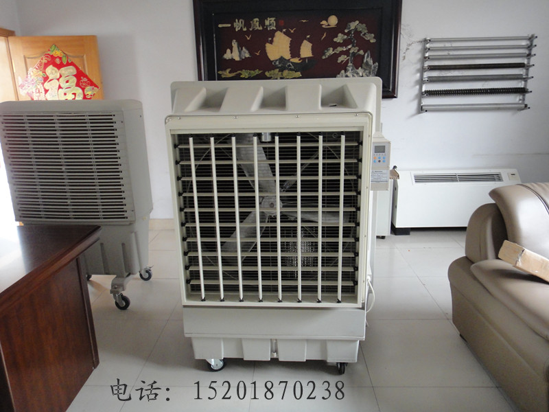 新的机器使用时有点塑料和纸板的气味,如果不适应,可以加满水按制冷吹一会儿,把水放掉,再加干净的水,这个程序多做几次,味道就会少了。本环保空调安装很简单,是没有室外机的,只要把空调主机放到室内就行,能移动,然后只要接一根一般常用生活自来水的进水管和空调的进水管口连接就行,水管连接好时,空调是自动供水的,环保空调电源线和家用电源连接就行,连接好后,就可以使用了。本空调还可以手动加水,在机器左侧设计了一个手动加水口使用起来更加方便。