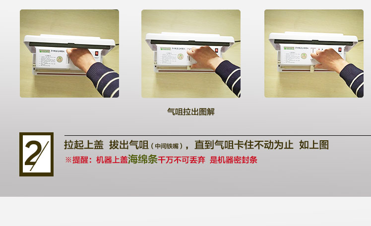 最新款2015年增强:新增增强型超大锁扣、加粗4毫米封口丝,封口更严实。可直接当封口机单独封口使用,也可同时抽真空加封口,超过机器宽度的袋子可分段热合封口,超强真空力度可达-0.055Mpa,不挑袋子,可以用任意厚度的普通真空袋、铝箔袋、阴阳袋、静电袋以及自己市场定制袋,原厂赠送15个真空袋。本产品一年免费保修,终身维修。