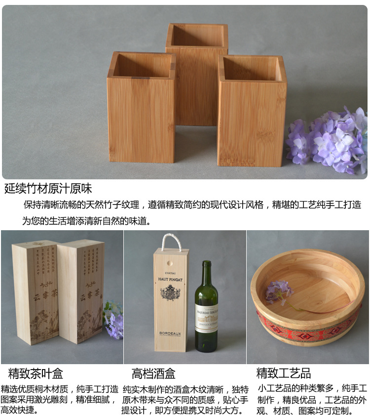 曹县青菏街道办事处耀发工艺品厂是酒盒、茶叶盒、皂托等木制礼品盒,木制相框、木制鸟窝等木质工艺品及竹质笔筒等竹质工艺品的专业生产加工公司,拥有完整、科学的质量管理体系。价格低质量优,每一款都能量身定做,满足每一位顾客的需求!我们从事木制品加工业已有十几年的经验,目前产品已畅销全国各地,并为我们的客户所认可。这些成绩都得益于我们最好的质量、创新的设计、有竞争力的价格和优秀的服务。曹县青菏街道办事处耀发工艺品厂的诚信、实力和产品质量获得业界的认可。欢迎各界朋友莅临参观、指导和业务洽谈!